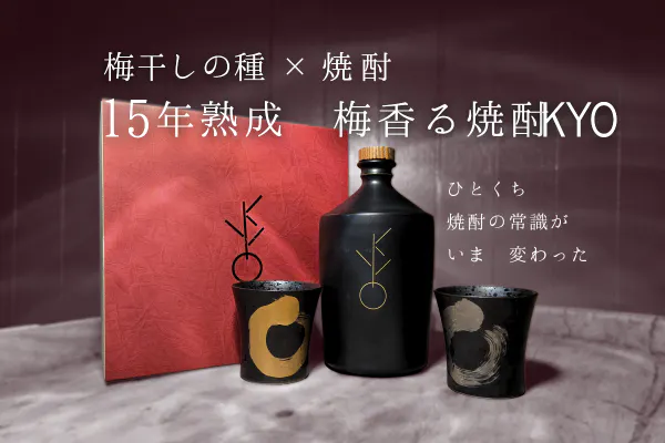 15年間、滞留された豊かな時間とKYOを一番濃く感じて頂けます。ひと嗅ぎすれば身の毛がよだち、梅の香りが鼻腔を抜け脳まで香りを響かせる。そして、さらりとした吞み口は、後味を感じさせず『儚さ』だけを残していく。それが、焼酎でありながら焼酎を超えたKYOという奇跡のお酒になっております。