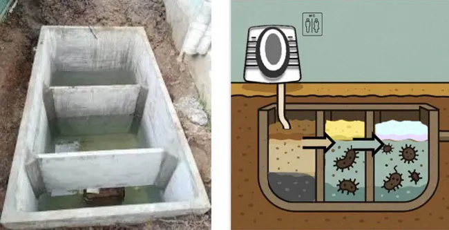 ②トイレ下の地中には三層に分けた浄化槽を設置。