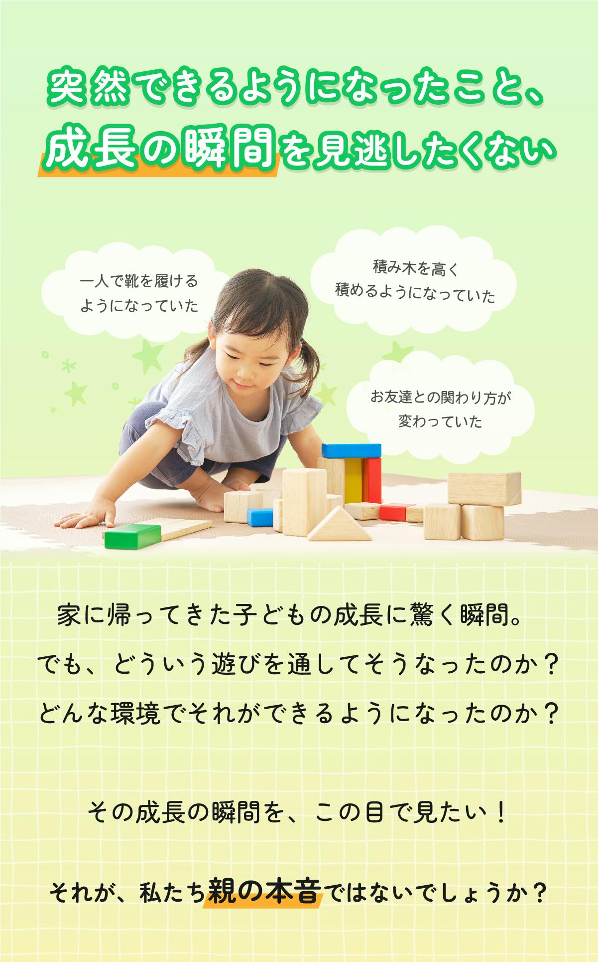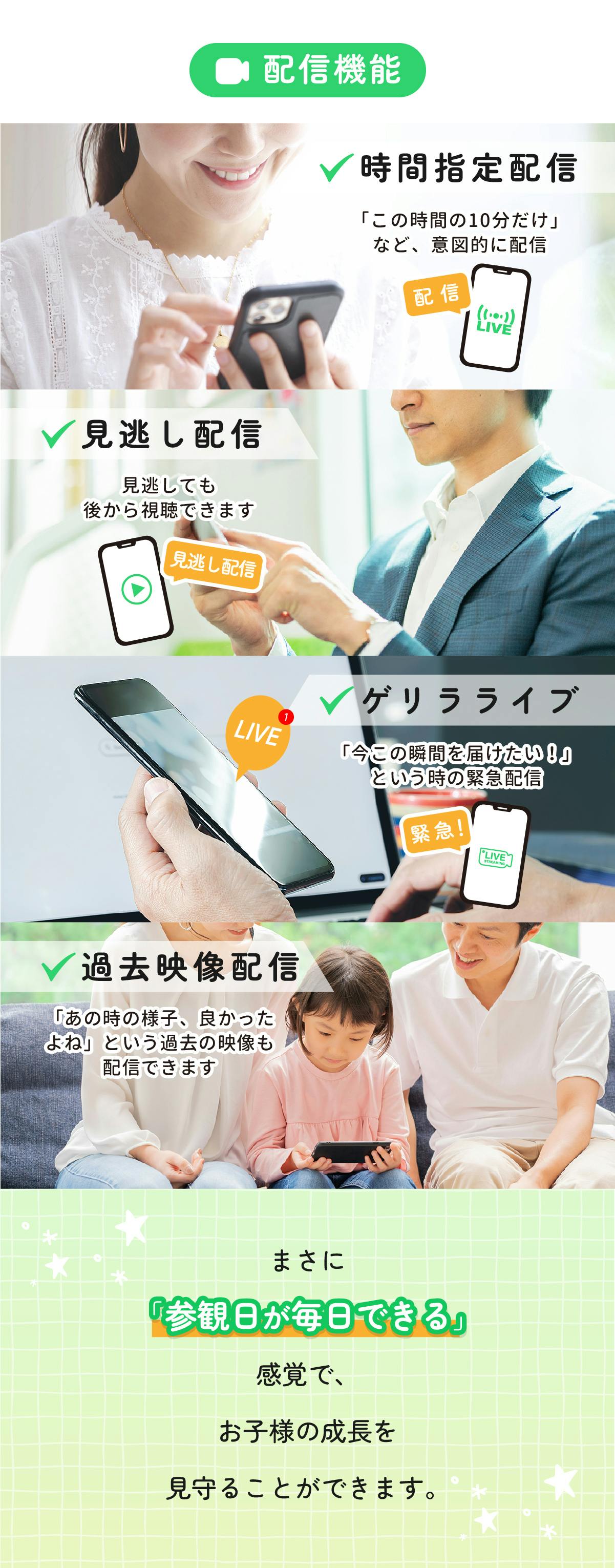 先生との対話や連絡帳だけでなく「映像」で我が子の様子を知ることで、子育てはもっと豊かになると信じています。