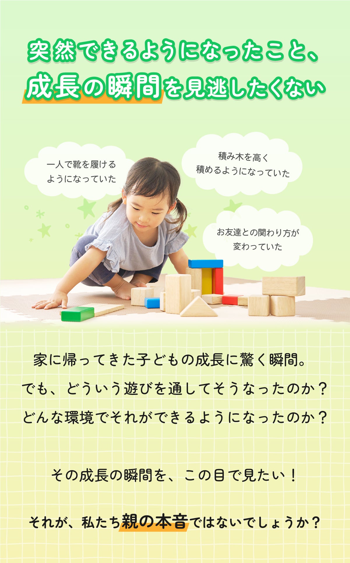 園や保護者の方々、そして未来の子どもたちのために——温かい支援と共感を力に、全国に広がる子育て支援の新しいかたちをつくっていきたいと考えています。