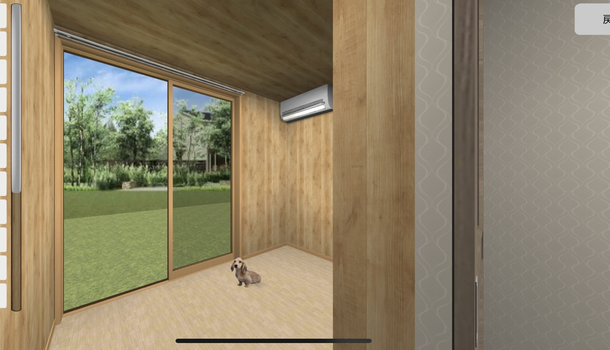 他の犬が部屋の中から見えないよう、窓の外には目隠しフェンスを作る予定です。
