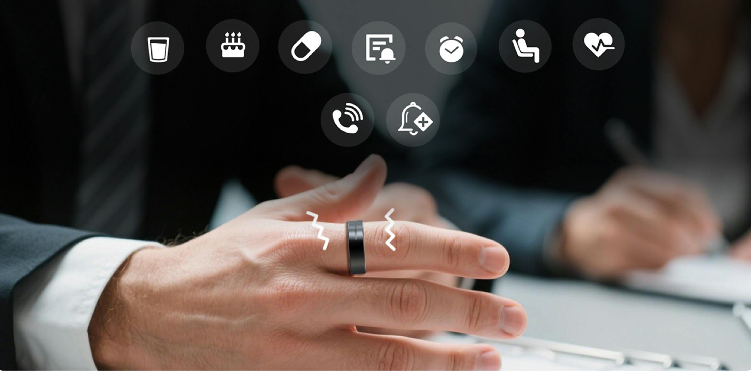 AIZO RINGは高精度のマイクロモーターを内蔵しており、多様なシーンで活躍する振動リマインダー機能を搭載し、日常生活をスマートにサポートします。スマホアプリに接続すると、健康データの異常、着信、目覚まし、服薬リマインダー、重要なイベント通知などを、リングが振動で通知します。