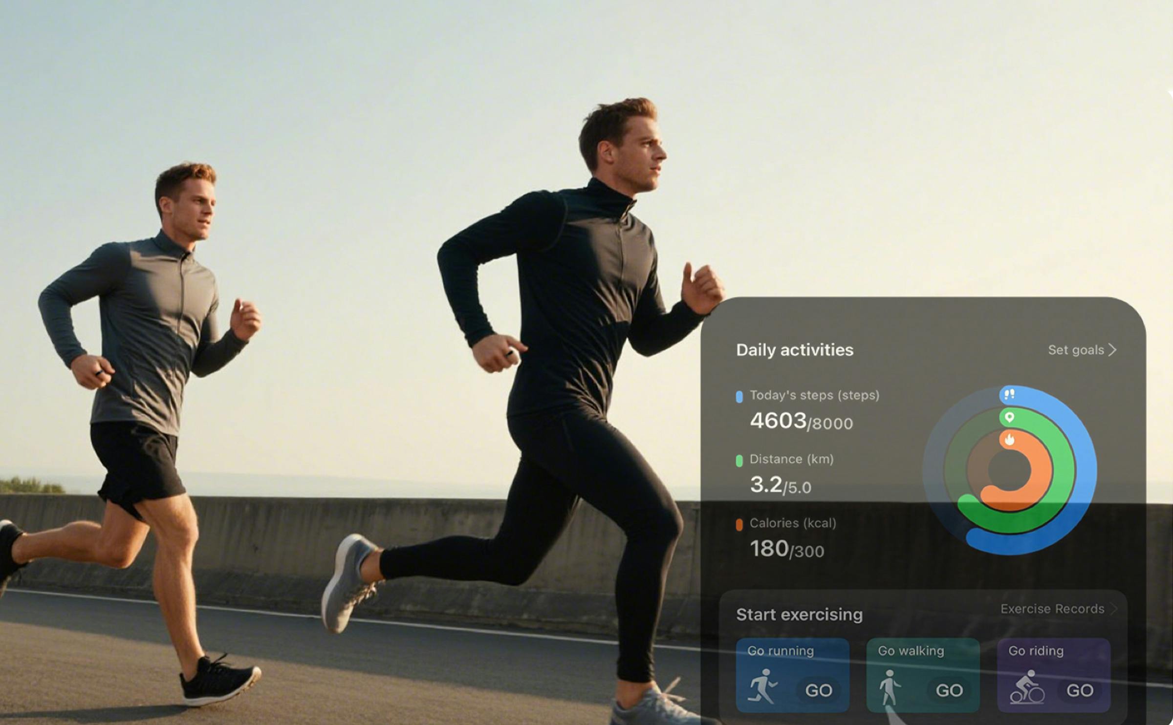 日常の歩数・移動距離・消費カロリーを自動計測。運動ごとの身体データを総合判定し、運動量・運動時間・運動頻度、さらに「どれだけ効果的に体を動かせたか」を可視化。目標達成度やフィットネスの質までわかる多彩なデータで、フィットネス管理をサポートします。