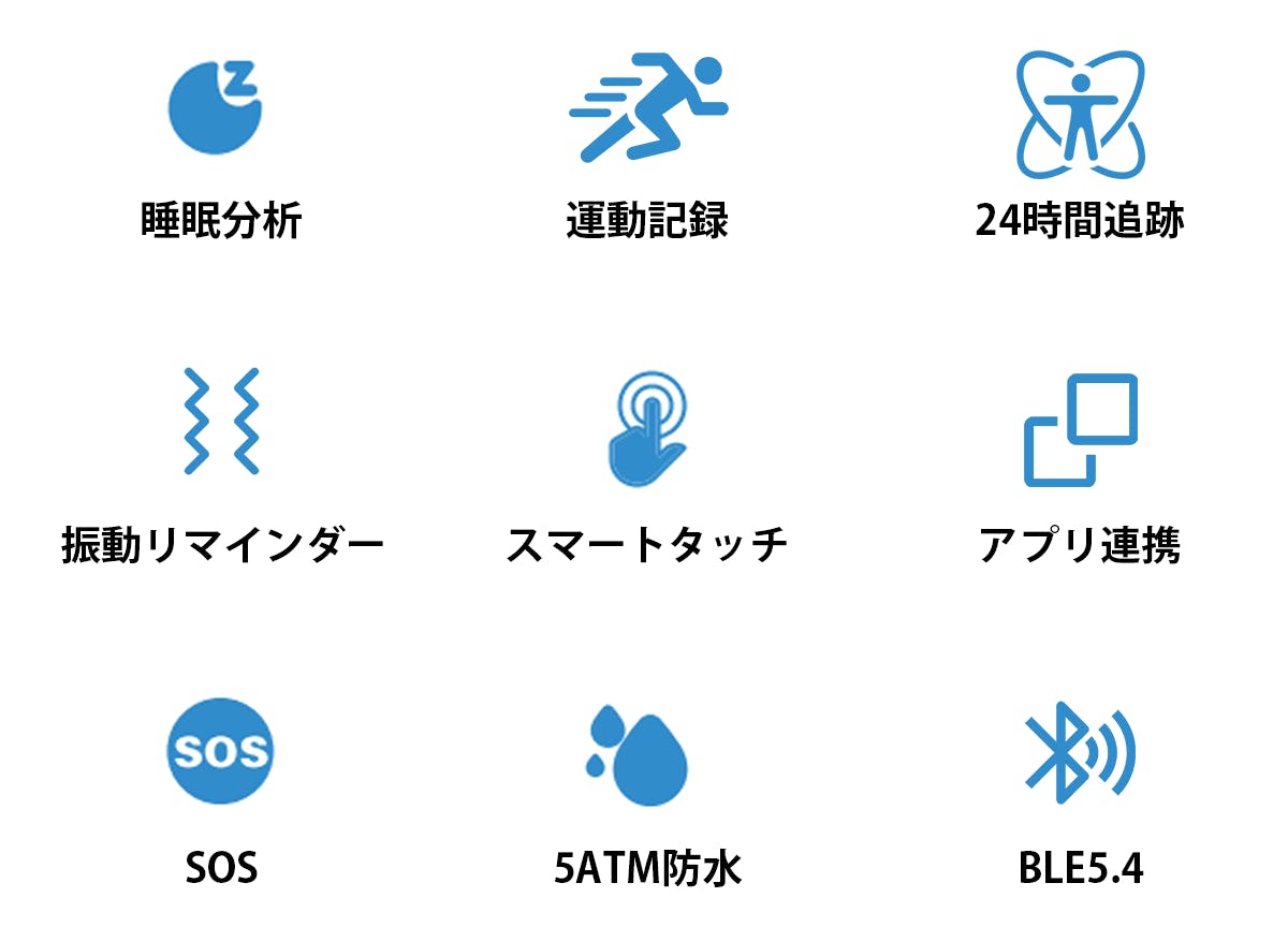 ・健康データの異常、着信、目覚まし、重要なイベントを振動リマインダーで通知