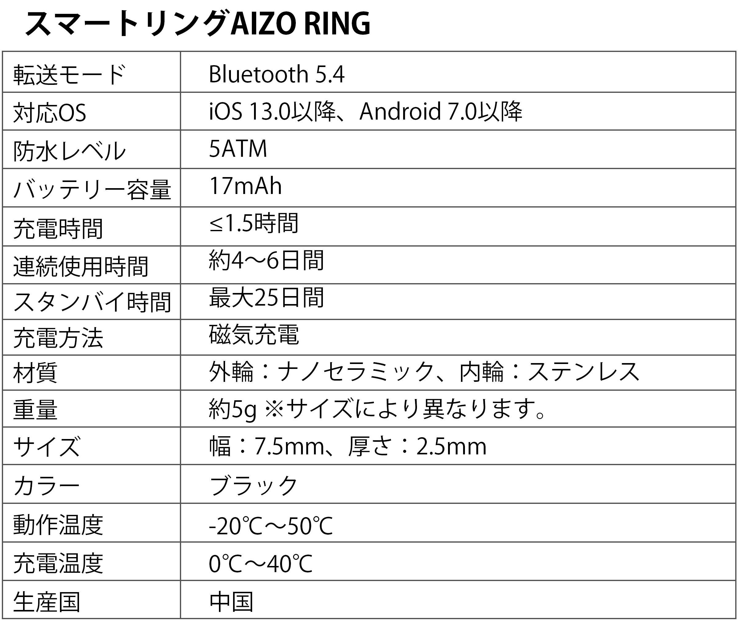 A:専用アプリ(AIZO RING)はApple App StoreまたはGoogle Playから入手できます。iOS 13.0以降とAndroid 7.0以降に対応しています。