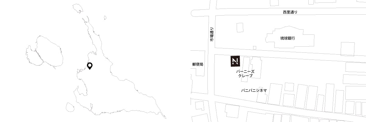 Google Mapで開く宮古島の中心部、目抜き通りの西里通りの入り口にある琉球銀行宮古支店のすぐ裏手と便利な場所に位置します。