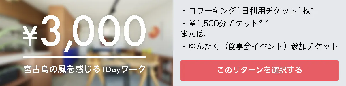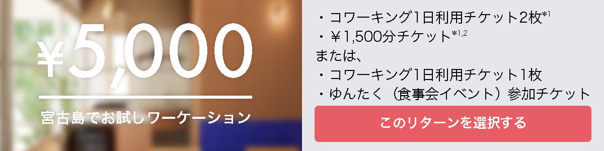 宮古島でのワーケーションからクリエイティブ支援まで。あなたの「働く」を豊かにする特別なリターンをご用意しました。