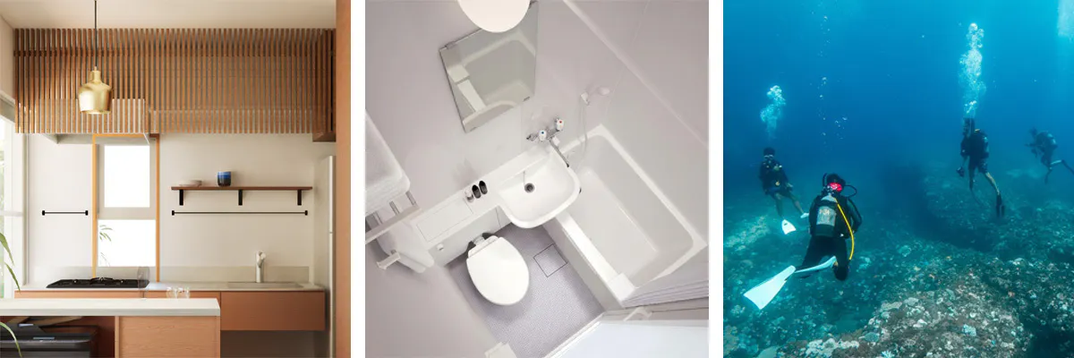 ノマドワーカーに最適なワーケーション拠点:創作に没頭したいクリエイターのために、中長期の滞在の方は24時間365日利用可能(貸切利用時以外)とします。創作活動を中断することなく作業に打ち込める環境を提供するためです。合間に海でリフレッシュできるようシャワーブースを完備し、交流ができるキッチンも整備することで、持続的な集中を求めるノマドワーカーを支えます。