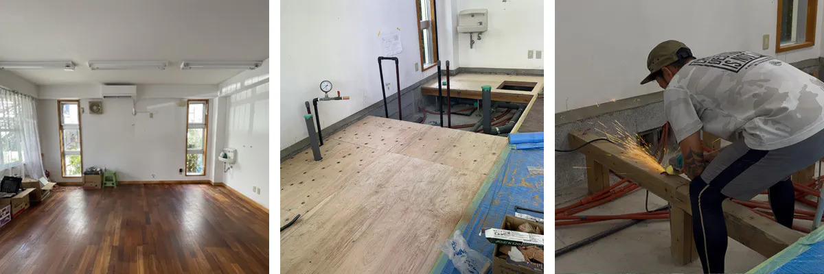 給排水・電気工事など、コワーキングスペースの基本インフラ整備を完了させます。
