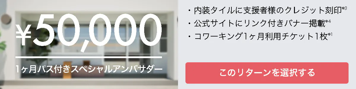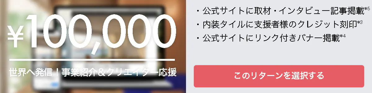 【物理リターン】 内装タイルへのクレジット刻印の設置、ウェブサイトへのクレジット・バナー掲載を順次開始します。