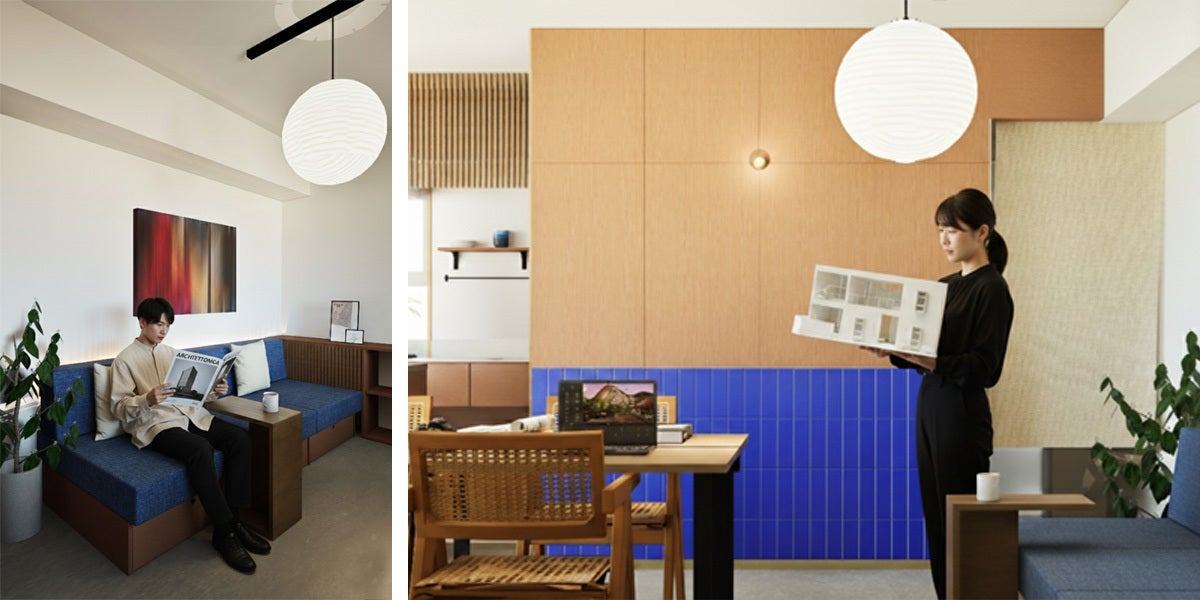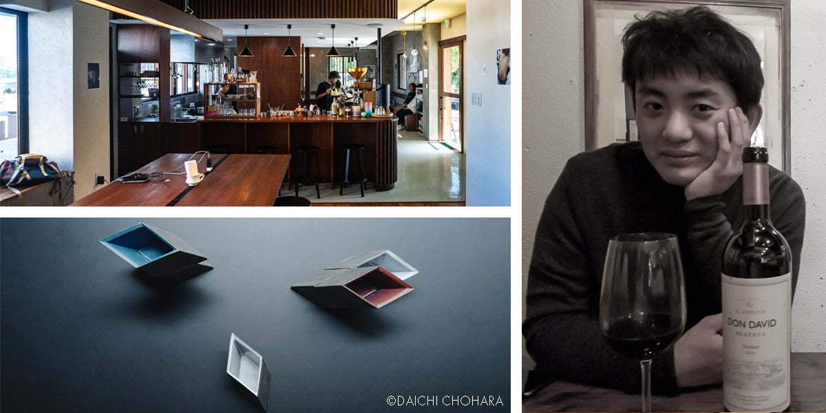 上:インテリアデザインを手掛けた宮古島の「ニンギン珈琲」|下:ミラノデザインウィーク・bud brandに出展した作品「RHOMBUS」※LINEs AND ANGLEsと共同