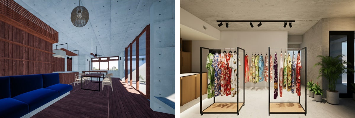 左:設計した宮古島のゲストハウス※unbuild|右:デザインした宮古島のアパレルショップ