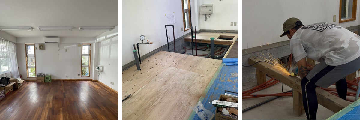 塗装、タイル施工、遮音・防汚対策など、ものづくり特化型アトリエスペースの本格的な整備を進めます。
