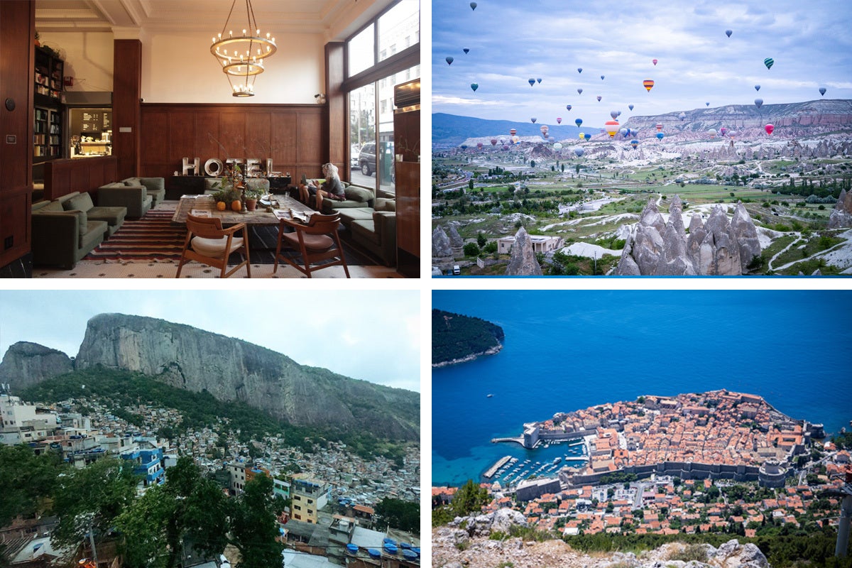 左上:エースホテル・ポートランド・アメリカ|右上:カッパドキア・トルコ|左下:ホッシーニャ(ファベーラ)・リオ デ ジャネイロ・ブラジル|右下:ドブロブニク・クロアチア