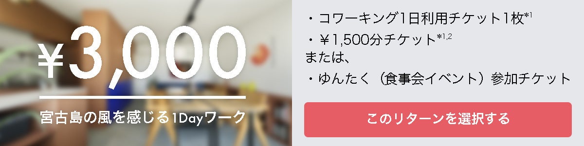 宮古島でのワーケーションからクリエイティブ支援まで。あなたの「働く」を豊かにする特別なリターンをご用意しました。