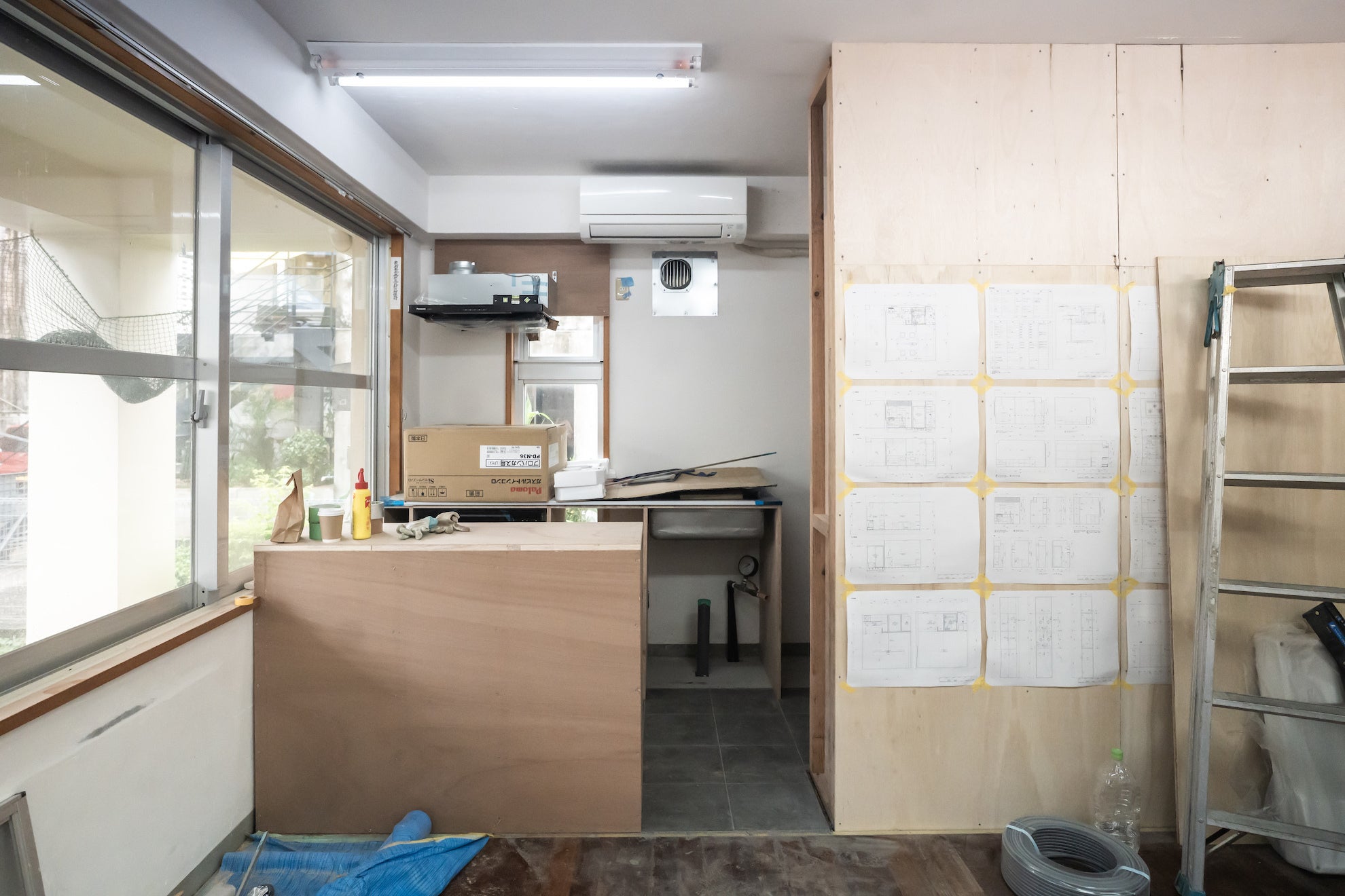 給排水・電気工事など、コワーキングスペースの基本インフラ整備を完了させます。