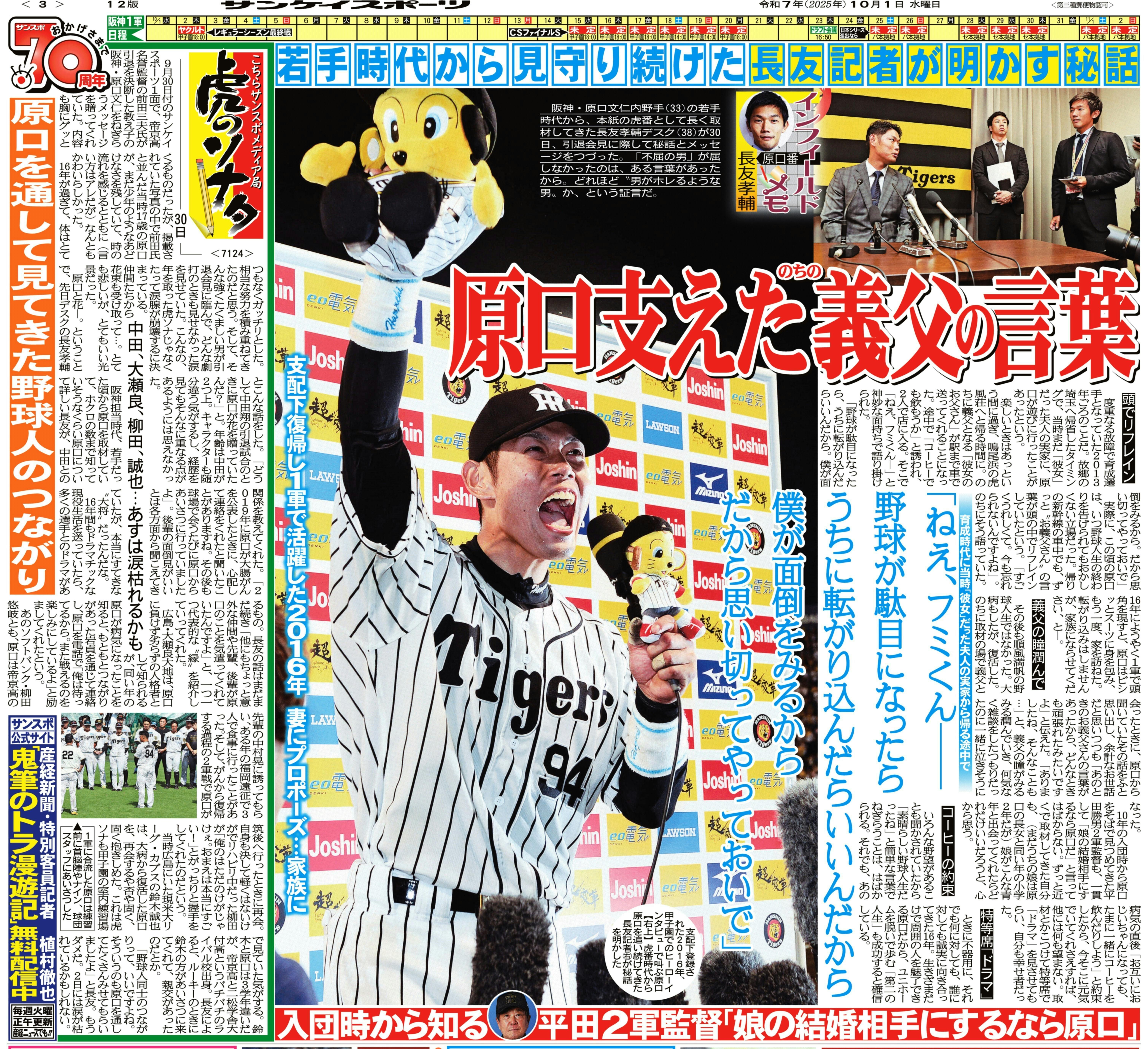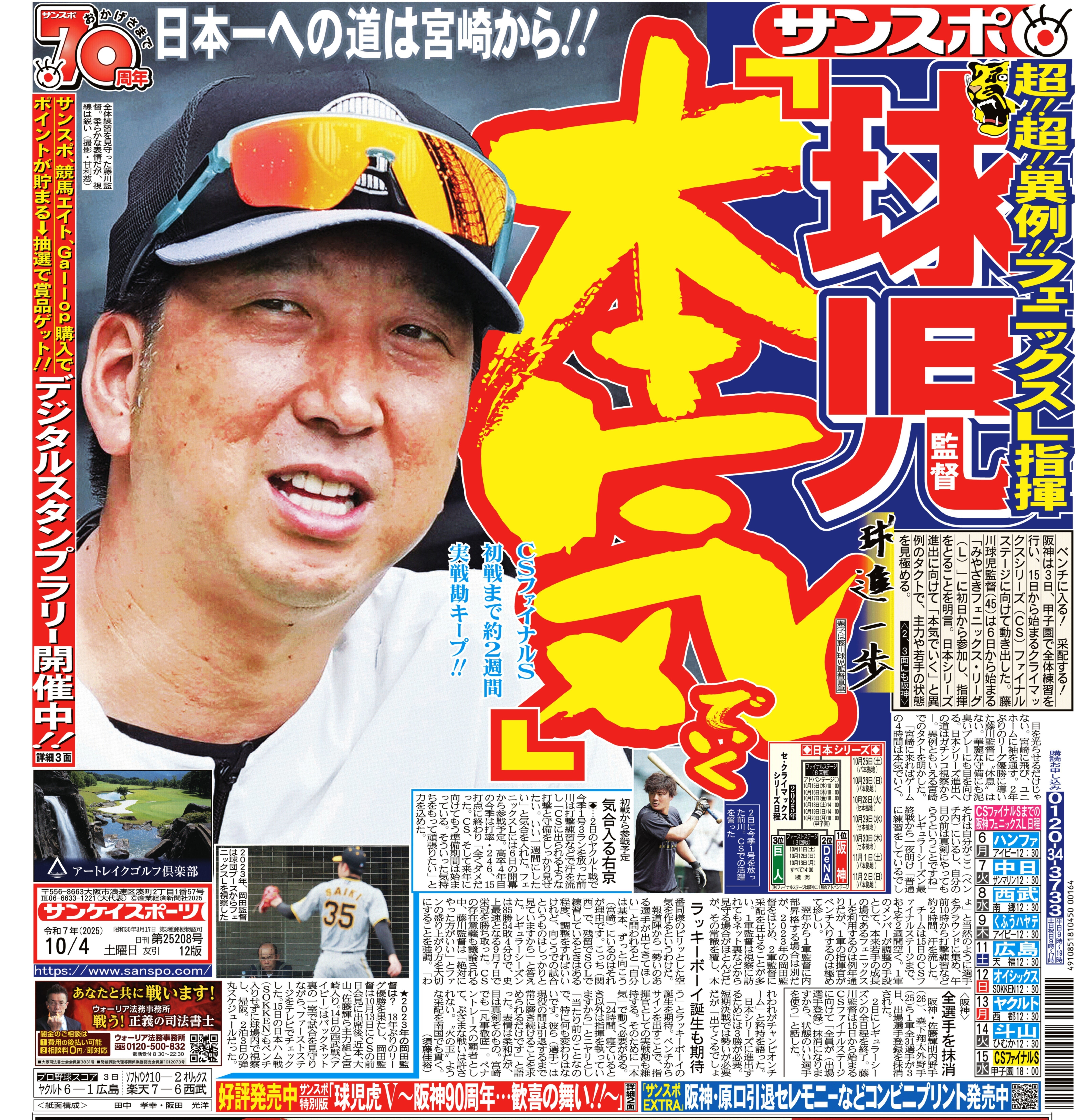 3日23時50分時点で、165人様にご支援いただき、目標金額の48%の達成率となっています。皆様のご支援ありがとうございます。締め切りまで、残りわずかとなりました。阪神・藤川球児監督は、みやざきフェニックス・リーグに初日から参加し、指揮をとることを明言。日本シリーズ進出へ「本気でいく」と語りました。これは異例とも言えるタクト。宮崎でも「凡事徹底」です。「本気」と書いて、「マジ」と読ませた漫画を思い出しました。1986年に少年チャンピオンで連載が始まった立原あゆみ先生の「本気!」です。白銀本気が主役の極道漫画。少年誌では異例の極道ものでしたが、タッチが柔らかく、優しい感じにも見えました。後に映画で実写化され、主役は東山紀之が演じました。この漫画の影響でで「本気」と書かれていると、「マジ」と読んでしまいます。4日付のサンケイスポーツ1面も球児マジ!と目に飛び込んで来ました。フェニックス・リーグから、マジな采配を続けていたら、当然、その先は日本一です!阪神を日本一へ!クラウドファンディングをご友人にもご支援の輪を広げていただければ、阪神のCS突破に勢いがつきます。引き続きクラウドファンディングが終了する10月5日までご支援、ご協力賜りますようよろしくお願いいたします。▼阪神タイガース応援プロジェクトはこちらからhttps://camp-fire.jp/projects/877619/view