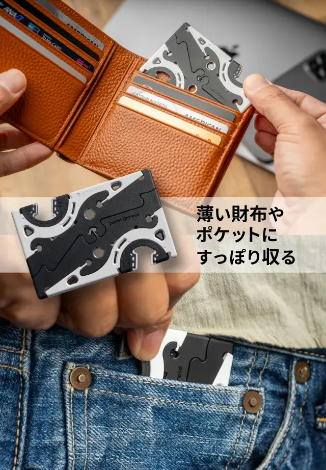 Pocket Tripod PROv2は、財布にも収まるほど小さくて薄いので毎日持ち歩くことができます。