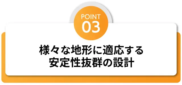 また、セパレート設計の脚部を採用。脚を2つに分けて独立して調整することで、接地面積を広げ安定性を高めます。