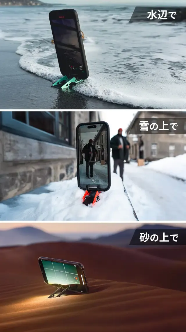 スマホを約1.27cm浮かせてしっかり固定することで、地面に触れず、スマホが汚れたり傷つきにくくします。