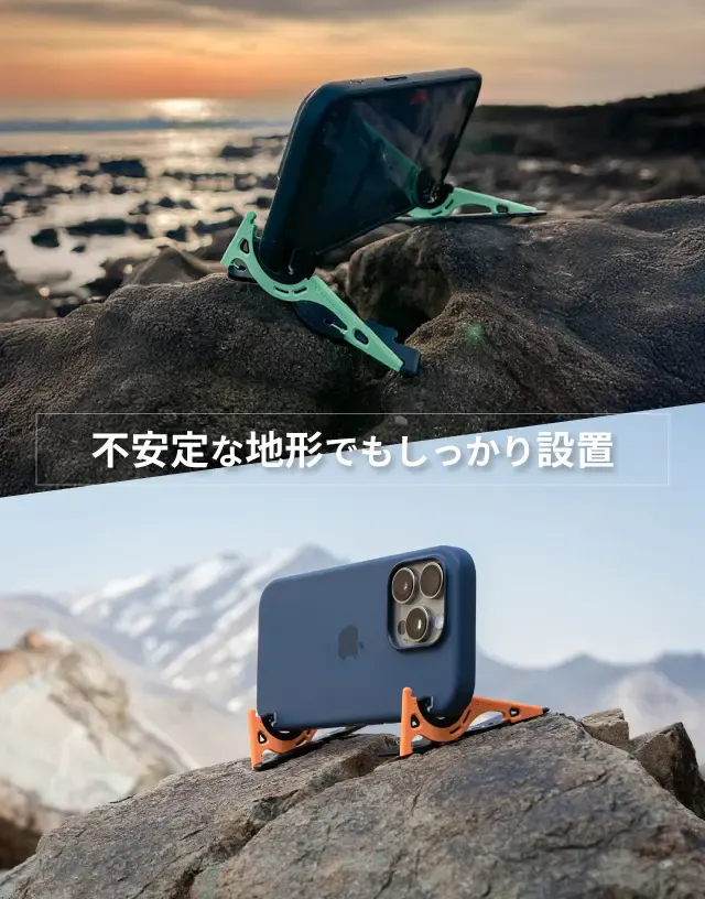 ゴツゴツした岩場や不安定な地形でもしっかりと設置できるため、撮影シーンを選びません。