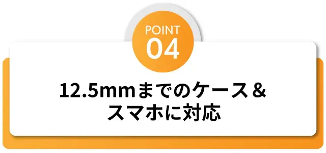 ケースをつけていないスマホやスリムなケース、最大12.5mmの厚いケースまで使用できます。