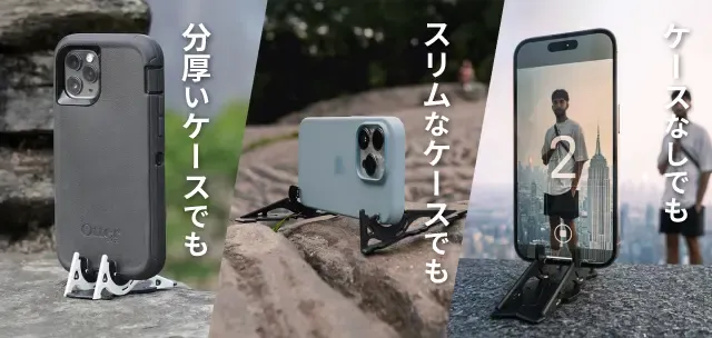 特別なケースやMagSafeは不要で、付属のアダプターで様々なスマホの厚さに合わせて簡単に固定することができます。