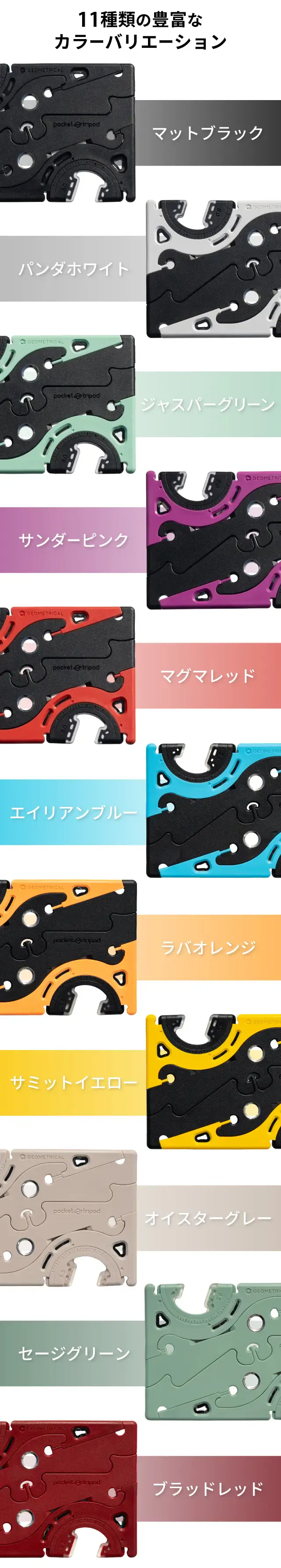 それ以来、Pocket Tripodはシリーズ累計20万個以上を販売、多くのお客様にご愛用いただいています。私たちはオリジナルデザインを何度もアップデートし、新機能と価値を加えてきました。また、Geometricalの製品ラインナップも拡大を続けています。