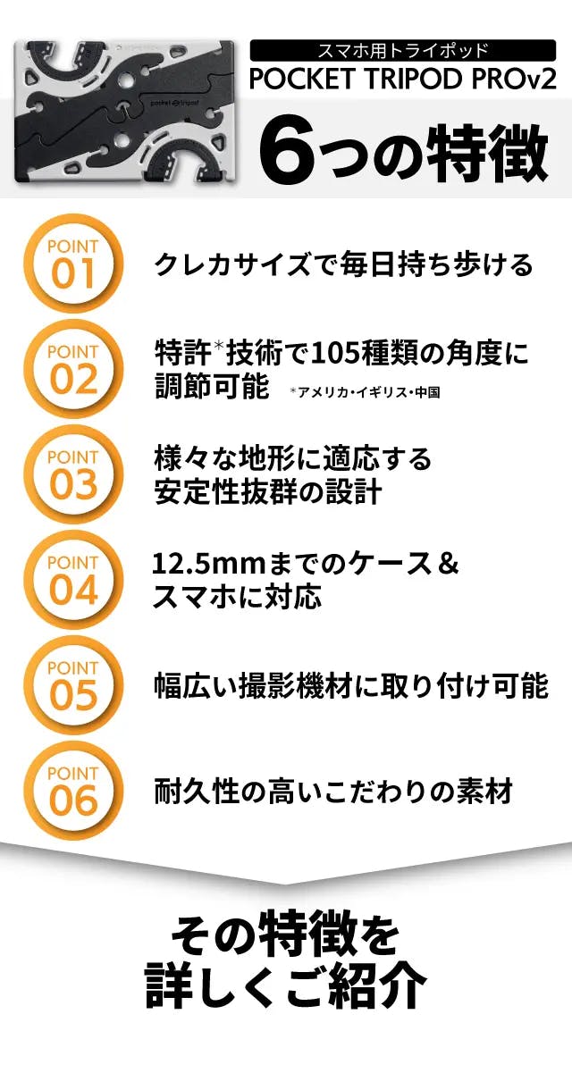 Pocket Tripod PROv2は、カリフォルニア州南部を拠点とするプロダクトデザイン会社「Geometrical(ジオメトリカル)」が開発した、米国・英国・中国で特許取得済みのスマホスタンドです。