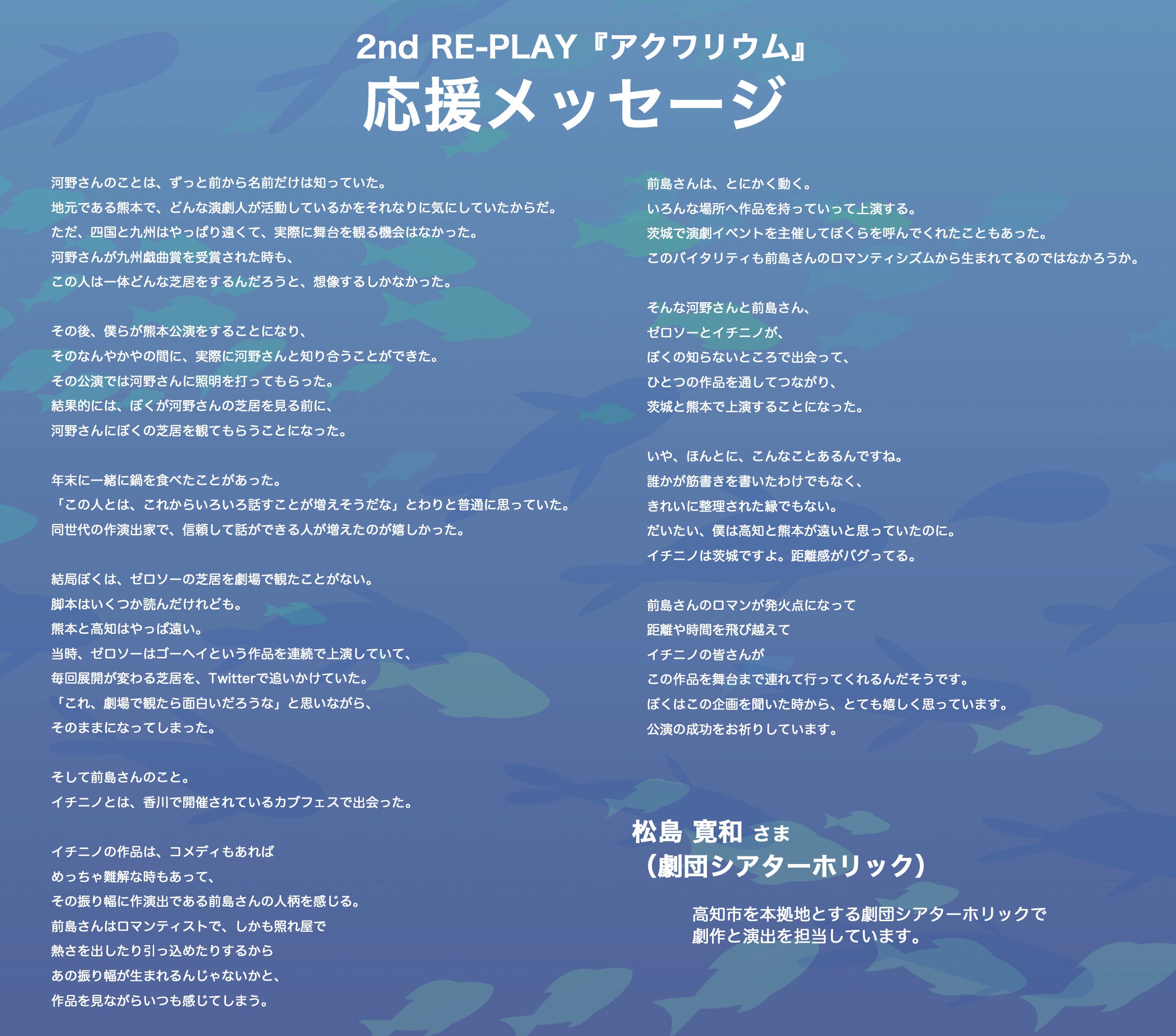 2nd RE-PLAY『アクワリウム』応援メッセージ