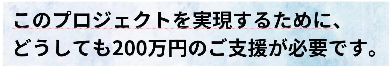 自己資金で200万円を用意することができましたが、まだ200万円不足しており、どうしても皆さまのお力をお借りしたいのです。