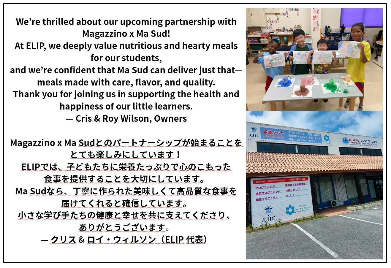 ここ沖縄のインターナショナルスクールから始まる挑戦を、子どもたちの食育の未来につながる大きな一歩にしていきたいと思っています。