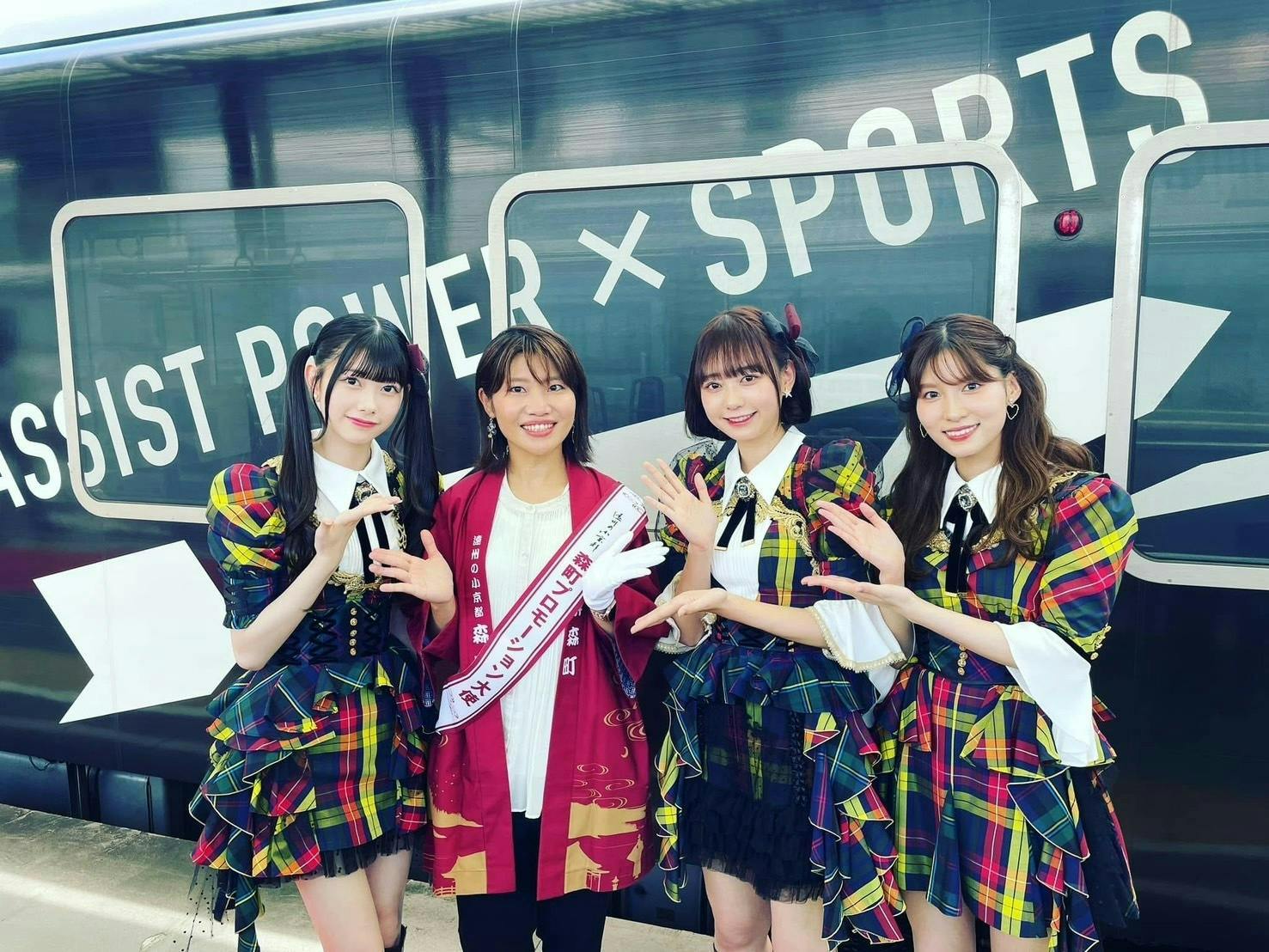 静岡県森町の観光大使を2年間歴任。AKB48のメンバーと森町の特産品をPRをした時の写真。