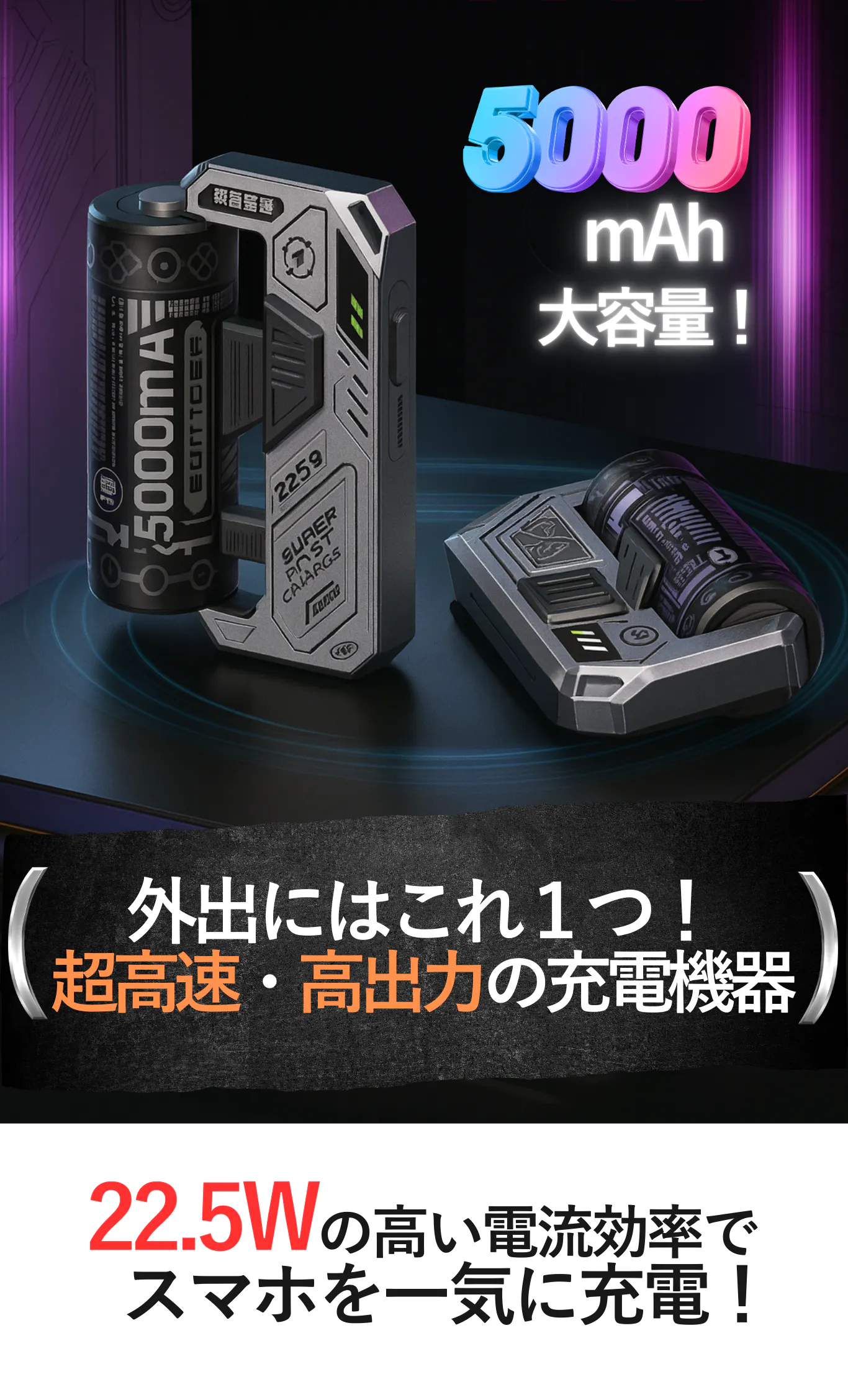 5000mAh × 22.5W 急速充電パワーバンク