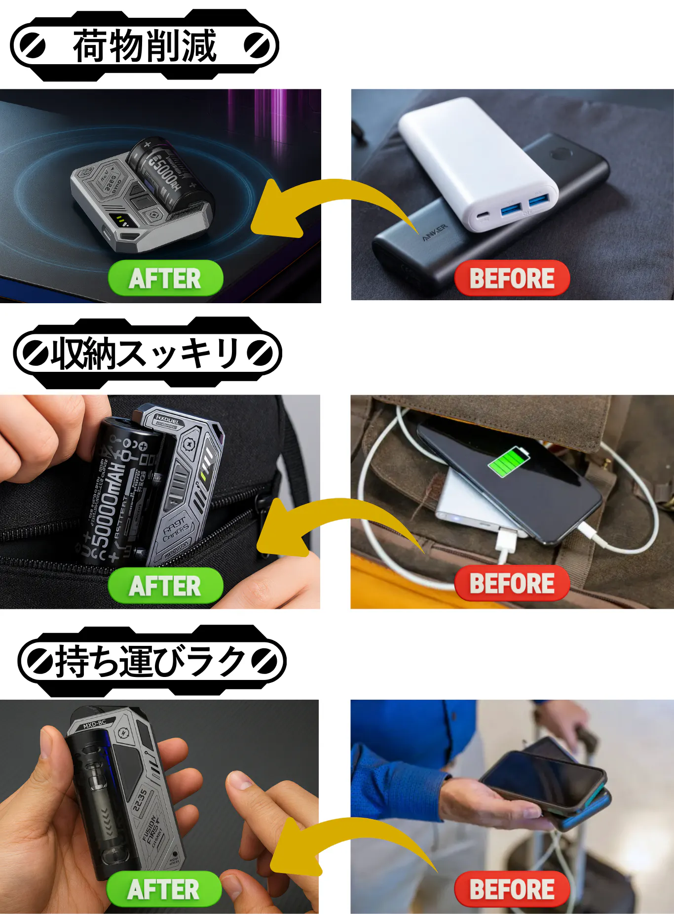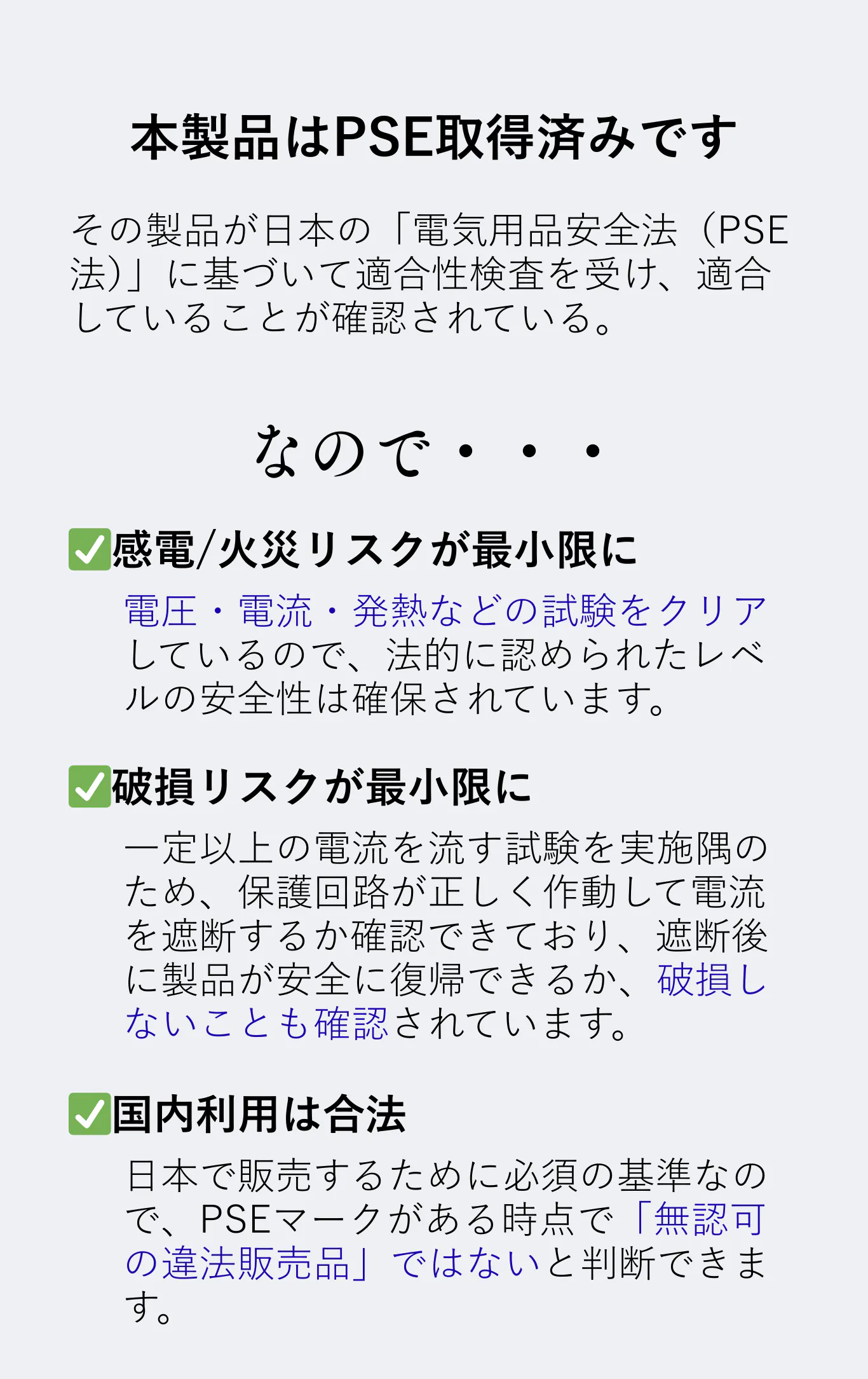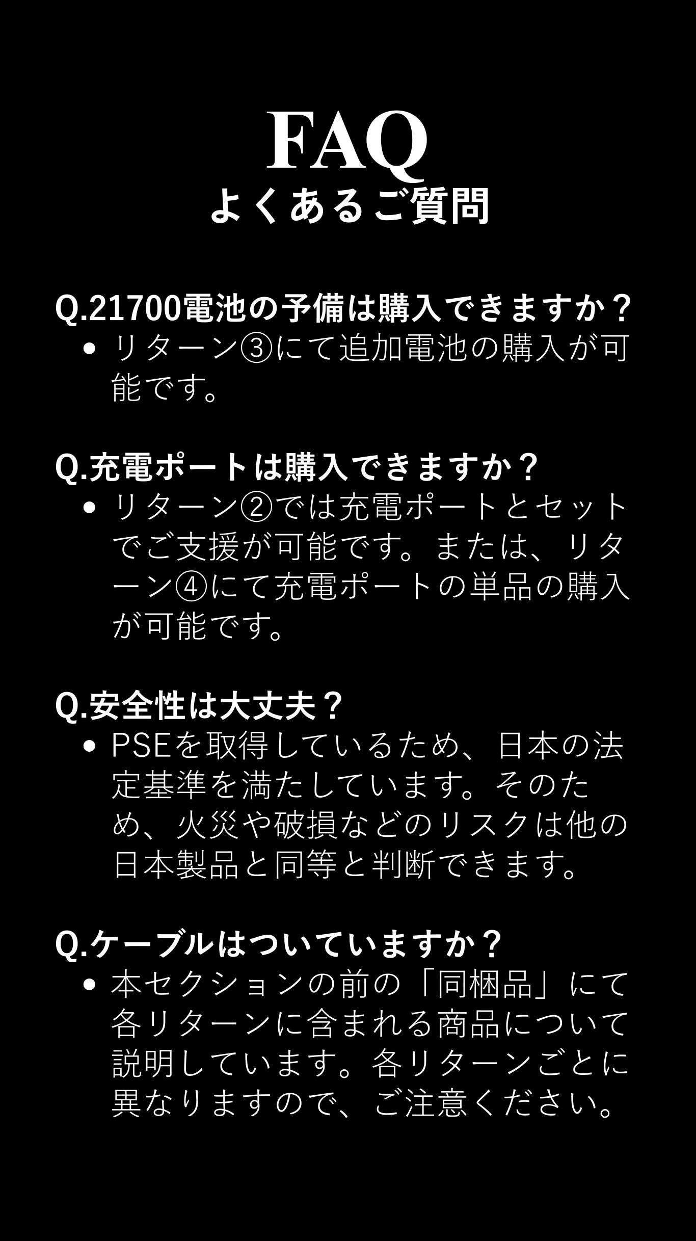 過充電・過放電保護/出力短絡保護/過熱保護/低電圧保護/高効率だけでなく、徹底した安全設計であなたのデバイスを守ります。