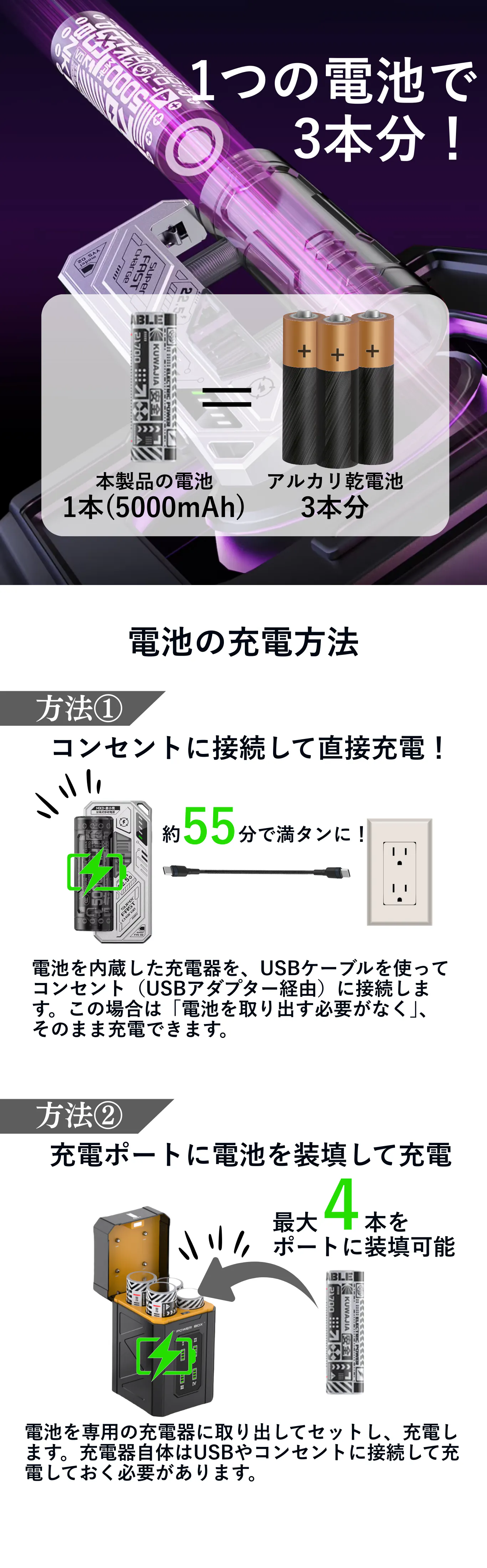✅ 本体もすぐにフル充電
