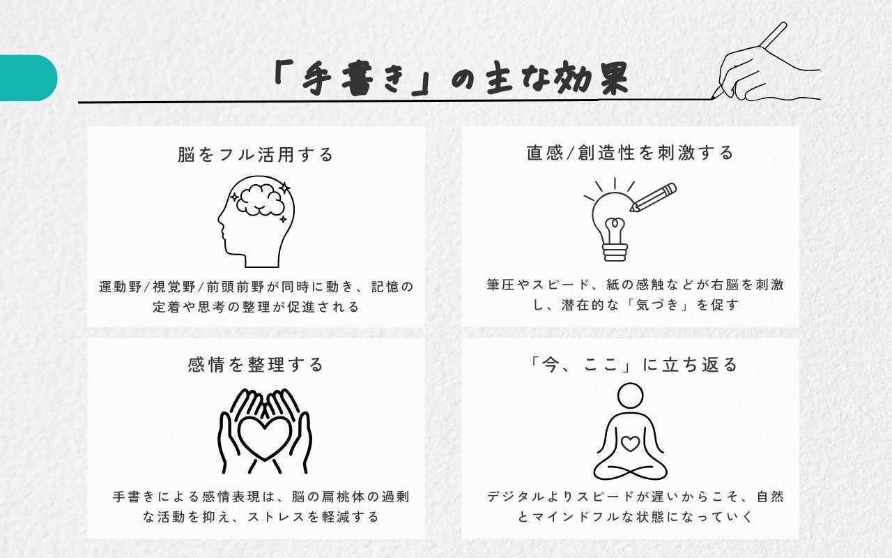 「手書き」で期待される主な効果についても、下記にまとめます。