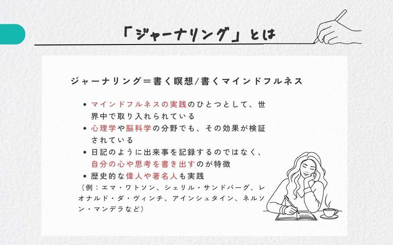 こうして見ていくと、ジャーナリングは単なる「ノートに書く習慣」ではないことがわかります。