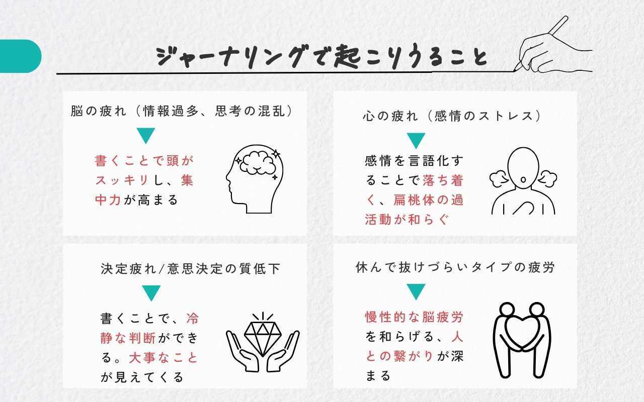 ジャーナリングを通じて、疲れが癒やされ、頭も心もクリアになると——
