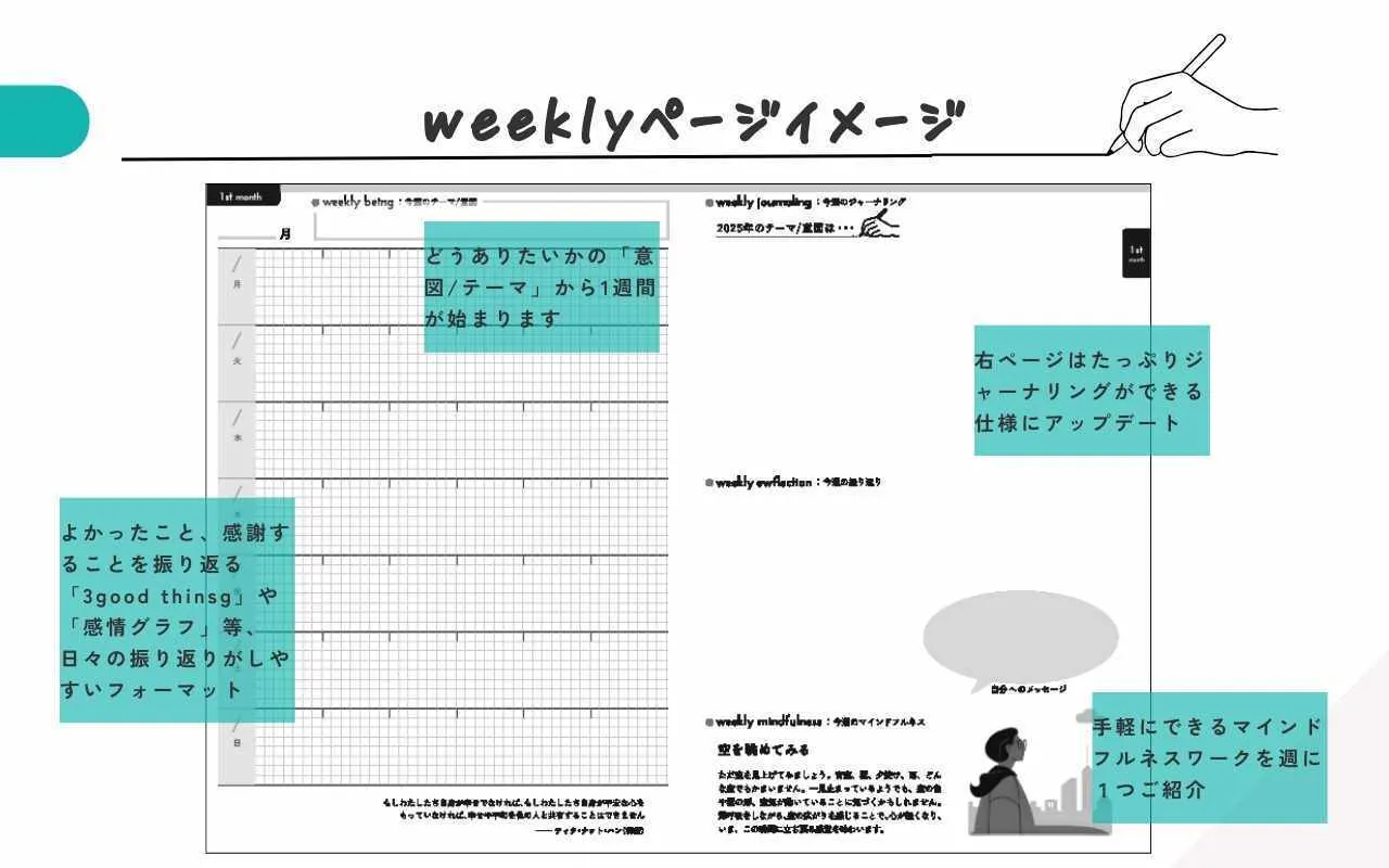 2026年版では、180度パカッと開く製本「コデックス装」の採用や、書きやすい紙質・デザインへの改良を行い、より直感的に、心地よく「書ける」一冊へと進化させます。