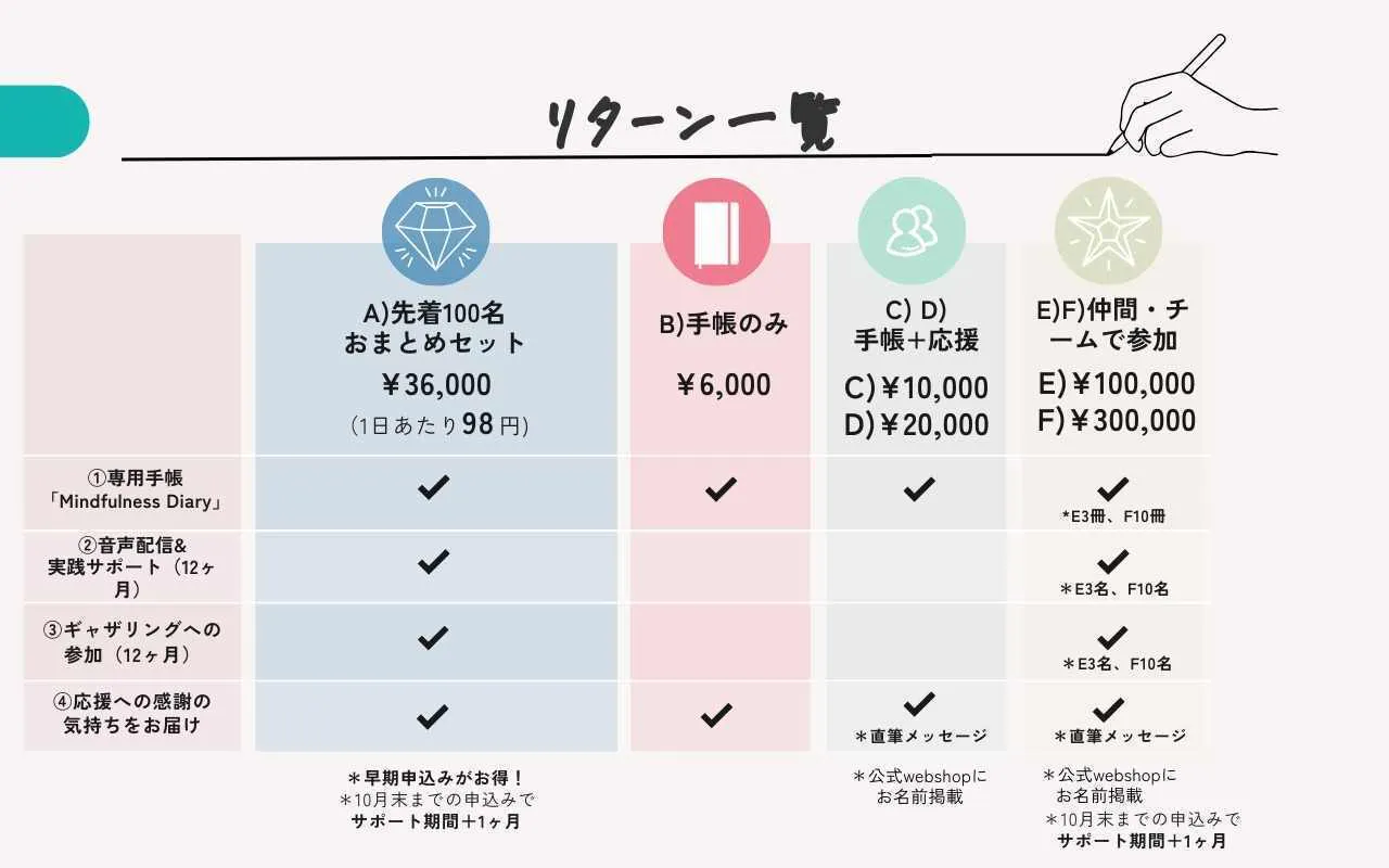 これまではクラファン限定だった「Mindfulness Diary」を、公式Webショップでいつでも購入できるようにします。さらに「身近な人にも広めたい」という声に応え、卸販売のしくみも整備。