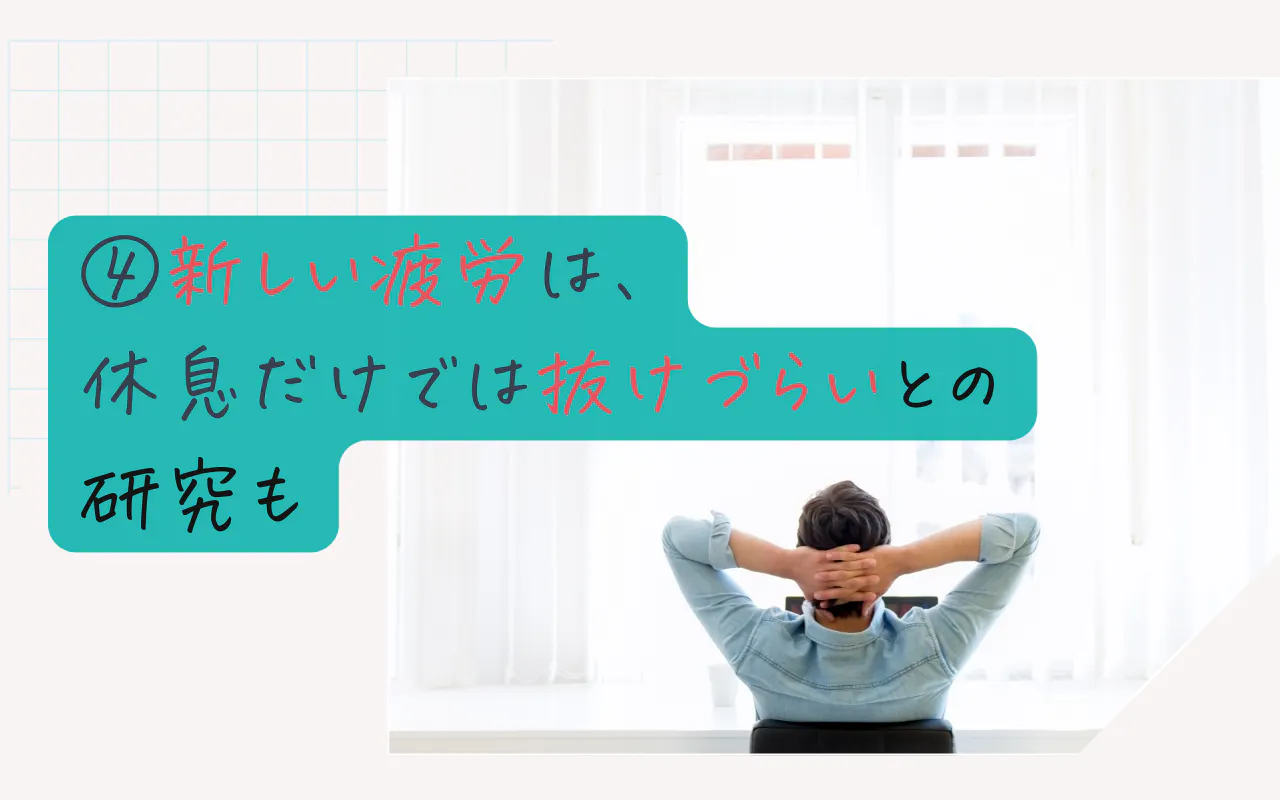 新しい疲れ④ 休息するだけでは、疲れがとれづらいとの研究も