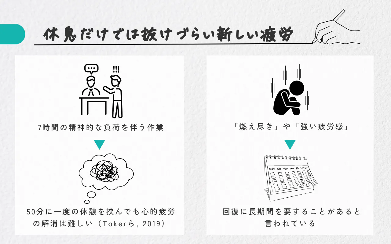 そのため「疲れているのは休みが少ないから」と理由づけるのは難しそうです。