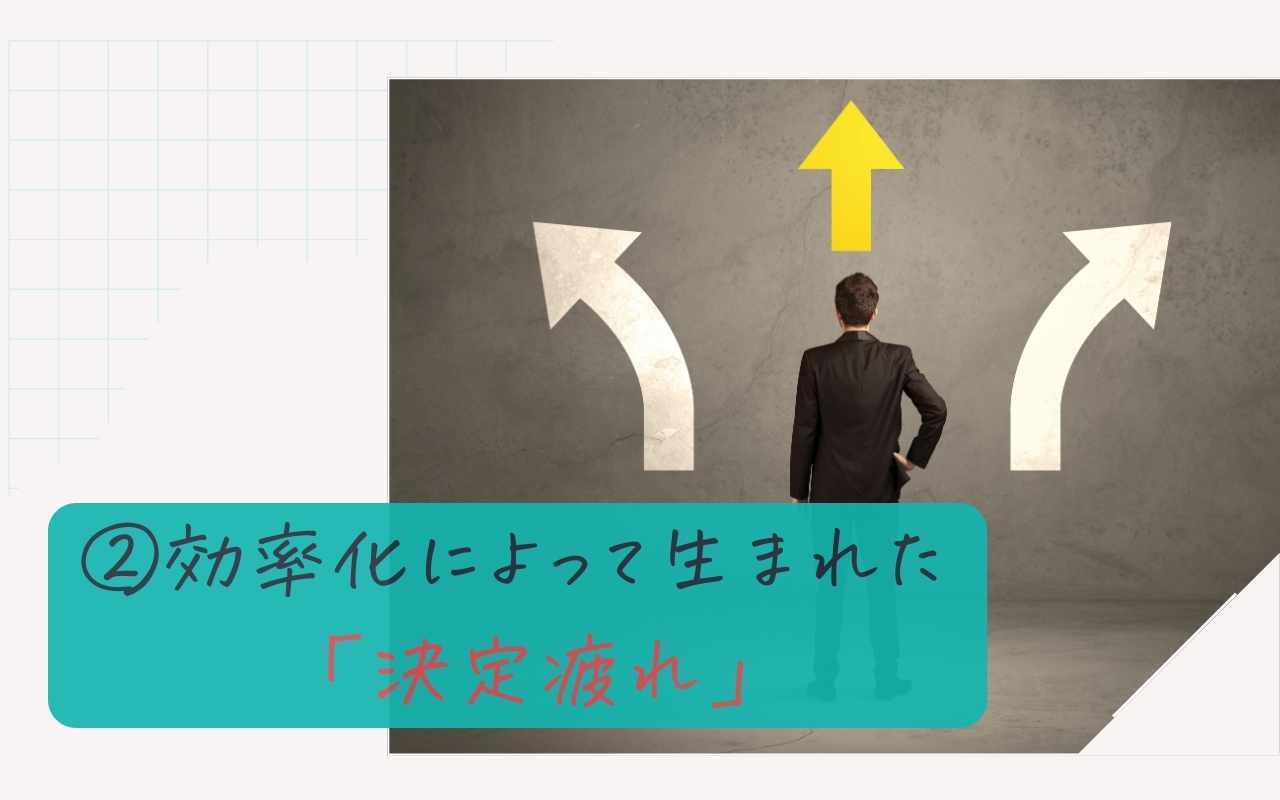 心理学では、人間は意思決定をくり返すほど判断の質が下がることが知られています。これは「決定疲れ(Decision Fatigue)」と呼ばれるものです。