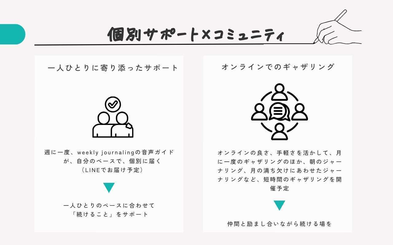 他にも「ジャーナリング」の進め方や可能性、体験談を、より多くの方に知ってもらうための発信活動も強化していきます。