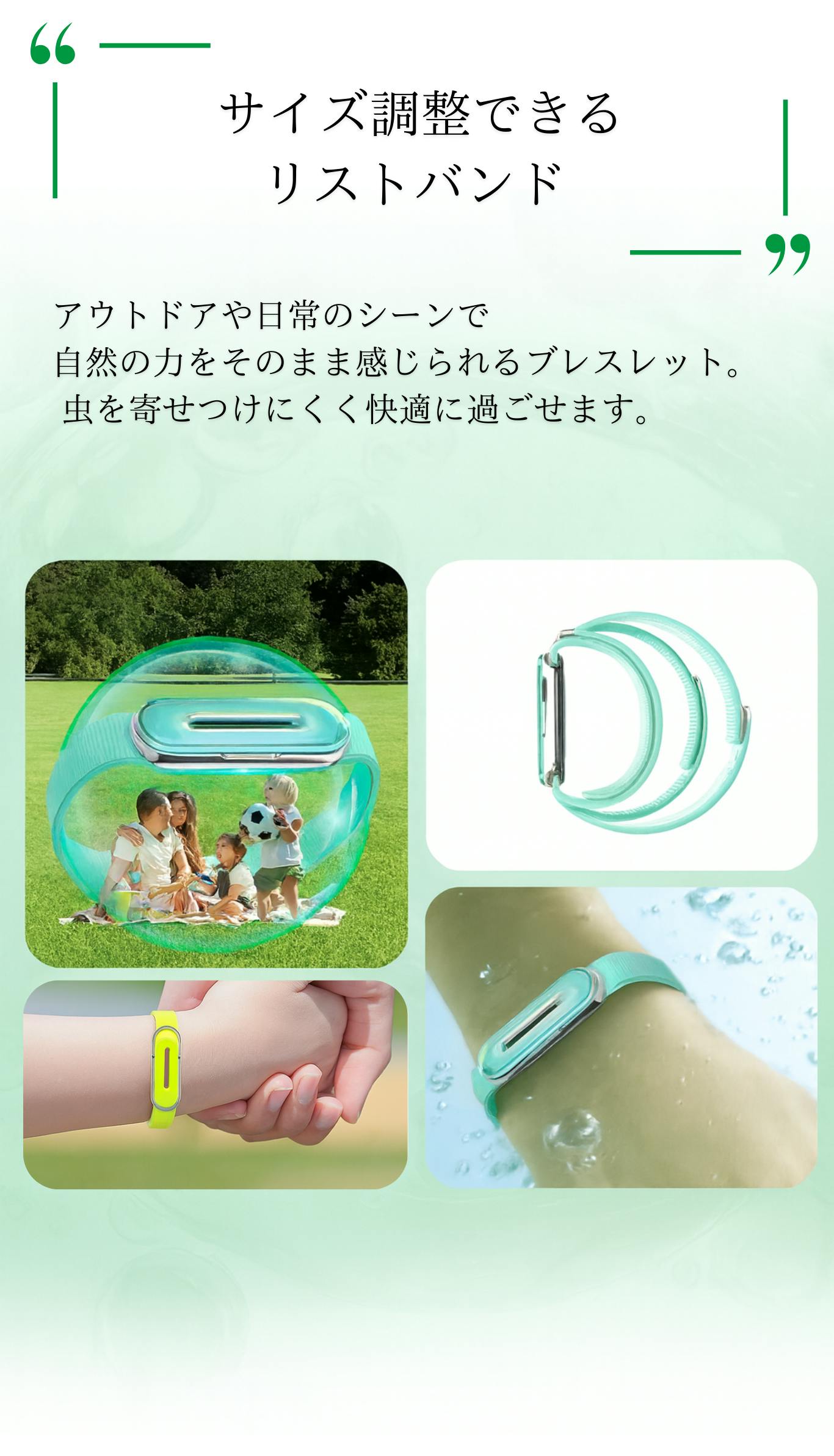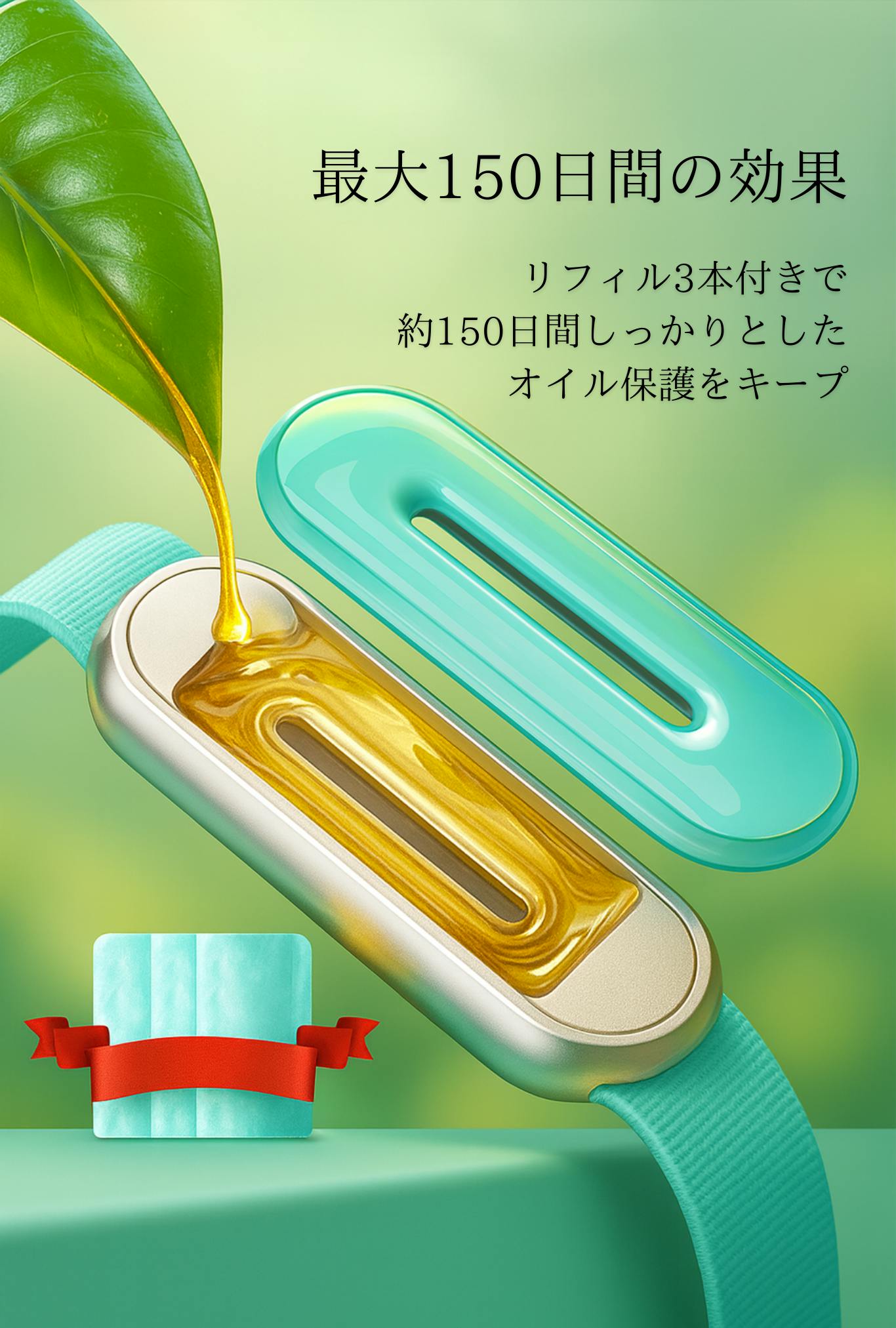 従来の使い捨てタイプと異なり、バンドは繰り返し使用でき、効果が切れたタイミングで新しいエッセンスを補充するだけで、再び蚊除け効果を持続させることができます。