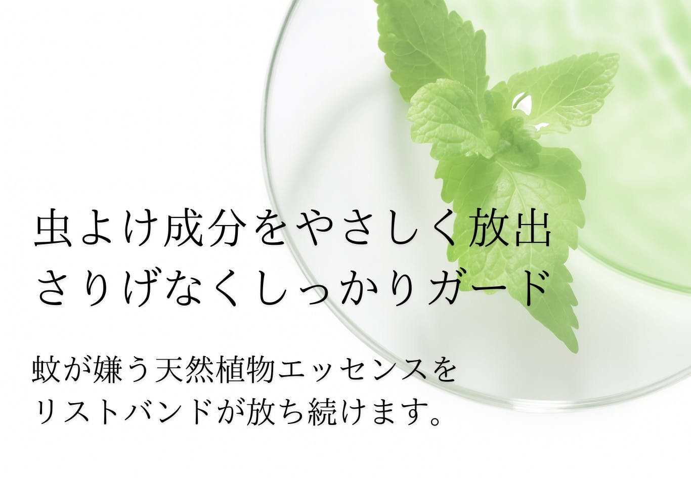 この蚊除けリストバンドは、化学合成の殺虫剤や強い薬剤を一切使用していないため、子供や妊婦さんでも安心して使えるのが大きな特徴です。