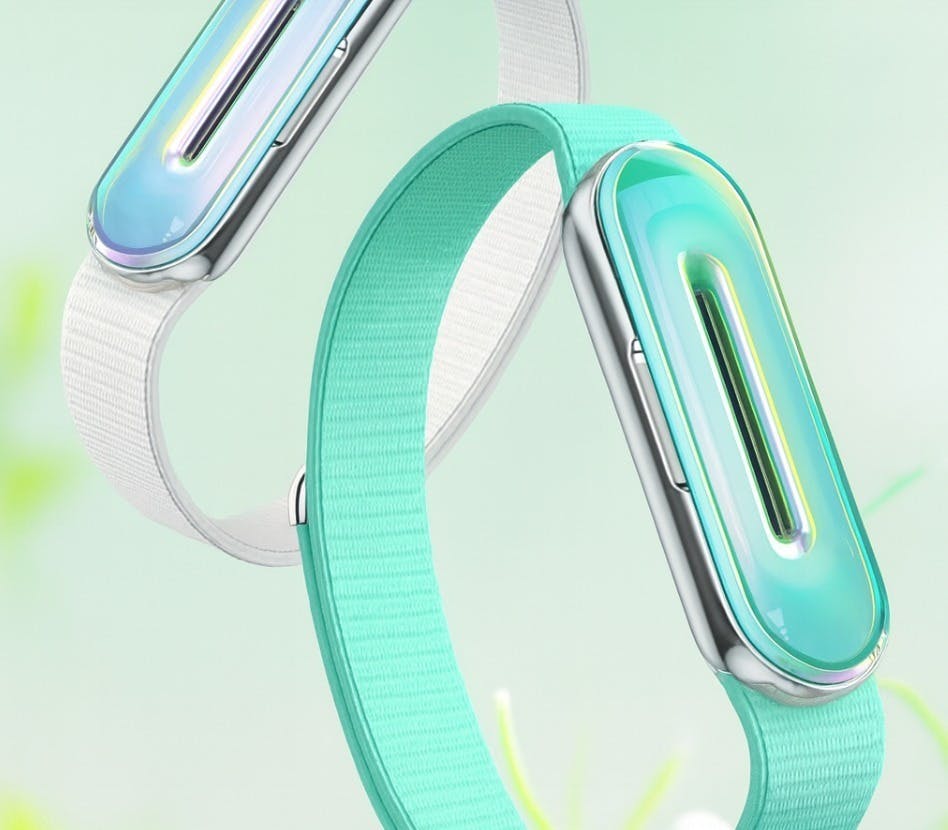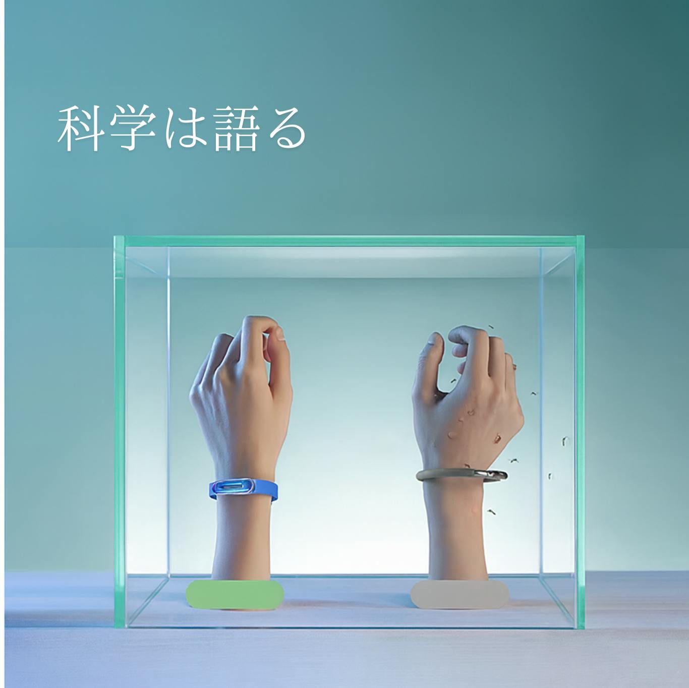 ▼リストバンドは室内で約2.5時間の完全防護、屋外では半径0.5 m程度の実用的バリアを形成。
