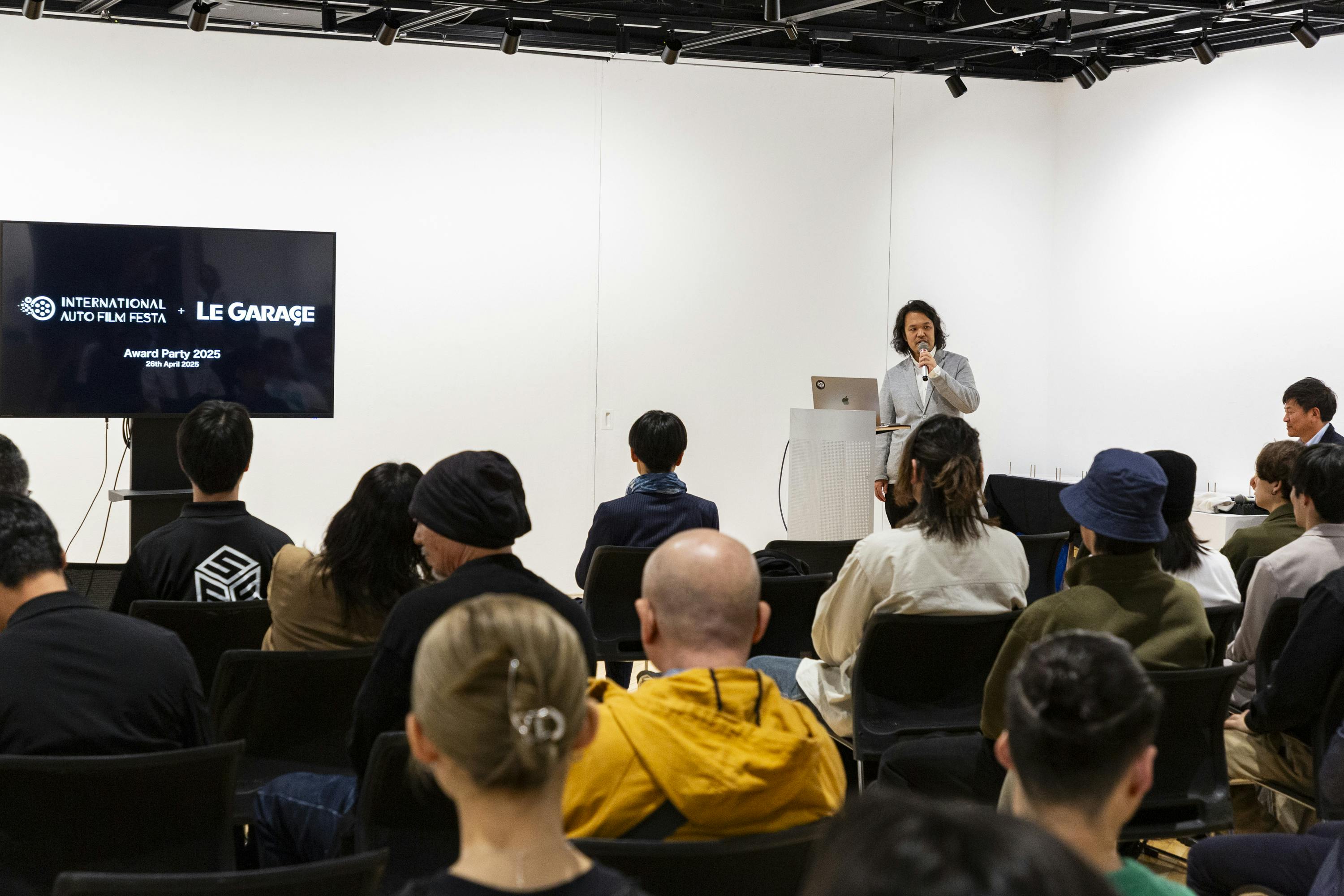 受賞作品の発表と授賞式を実施。授賞式後には懇親会も開催。IAFF2024、IAFF2025と、六本木のAXIS Galleryにて、パートナーである『Le Garage』さんと共催で開催。
