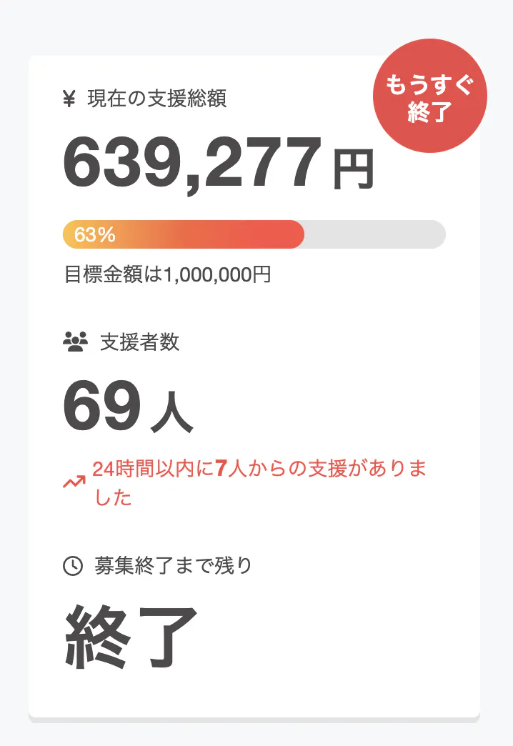 しかし、支援額以上に「69名の支援者」の皆さんと繋がれたこと。